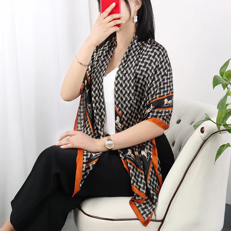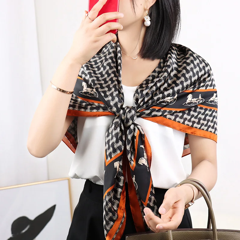 Découvrez notre sublime foulard carré en soie aux motifs noir et blanc pour femme. Très tendance, c’est l’accessoire indispensable de la saison à avoir dans son dressing. Nouez-le à votre cou, portez-le sur vos épaules ou encore attachez-le à la anse de votre classe pour donner une touche chic en plus à votre allure. N’attendez plus pour commander le vôtre, vous allez l’adorer !