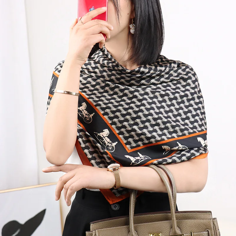 Foulard carré en soie aux motifs noir et blanc pour femme