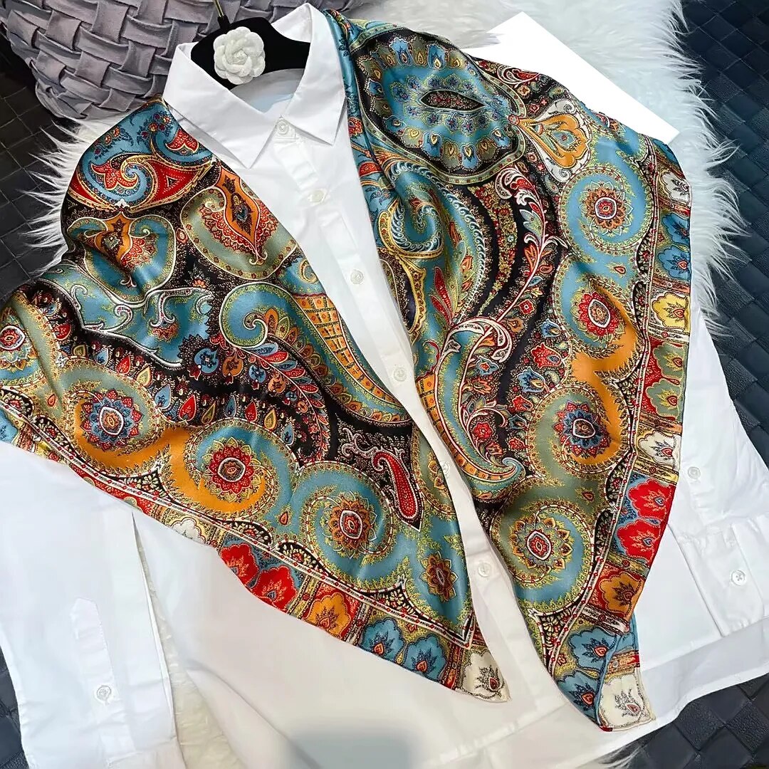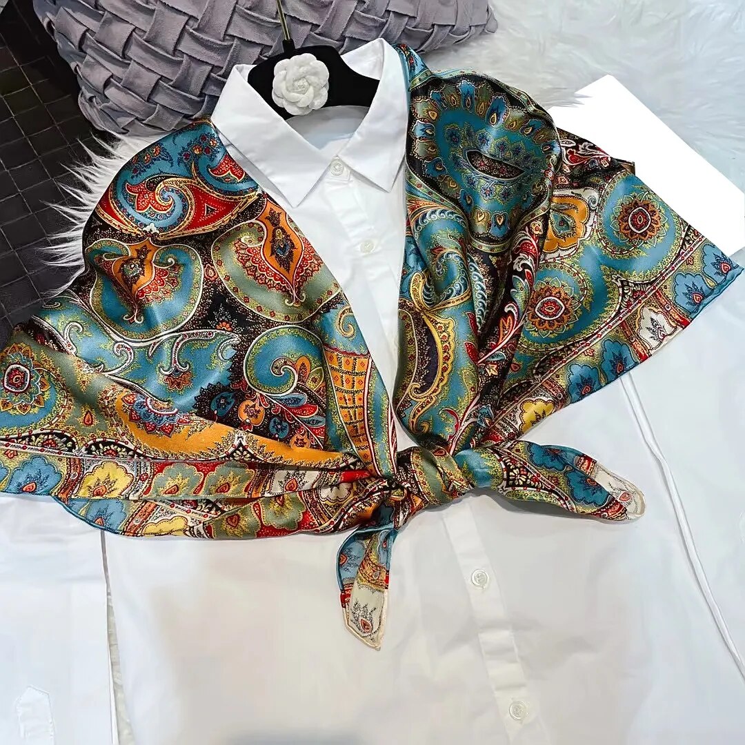 Notre sublime foulard carré en soie pour femme vous est proposé en plusieurs teintes et motifs différents. Allant des couleurs chaudes aux tons plus froids, ils accompagneront avec élégance vos tenues d’automne-hiver ou printemps-été. Il ne vous reste qu’à sélectionner le ou les vôtres.