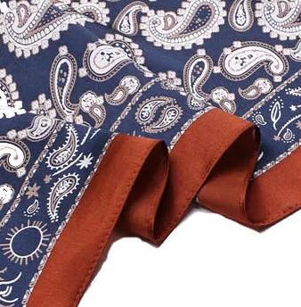 Découvrez notre petit foulard carré de luxe à imprimé cachemire en soie pour homme. Très élégant, il est l’accessoire parfait de mi-saison. Sa composition en soie de mûrier 100% vous protègera parfaitement du froid et des intempéries lorsque vous l’aurez autour du cou. N’attendez plus pour commander ou offrir ce foulard chic et original.
